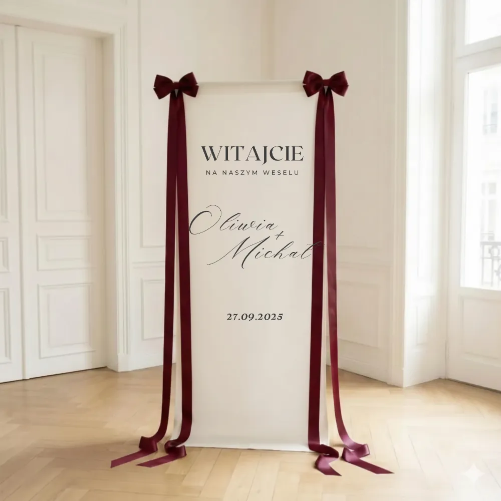 Funkcjonalność: Każdy baner posiada w rogach eleganckie złote oczka, które pozwalają na łatwe zawieszenie na stojaku lub drążku.